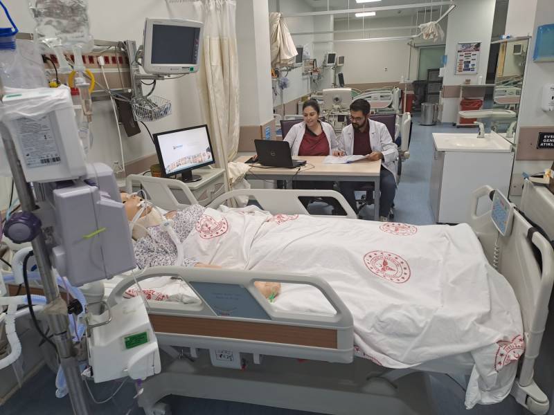 Fakültemiz Hemşirelik Bölümü öğretim elemanlarından Doç. Dr. Özlem Doğu, Arş. Gör. Dr. Nasibe Yağmur Filiz, Arş. Gör. Ramazan Bozkurt ve Hemşirelik Esasları Anabilim Dalında İşletmede Mesleki Eğitim kapsamında uygulamada olan öğrenciler ile yoğun bakım ünitesinde senaryo doğrultusunda simülasyon eğitimi gerçekleştirilmiştir.
