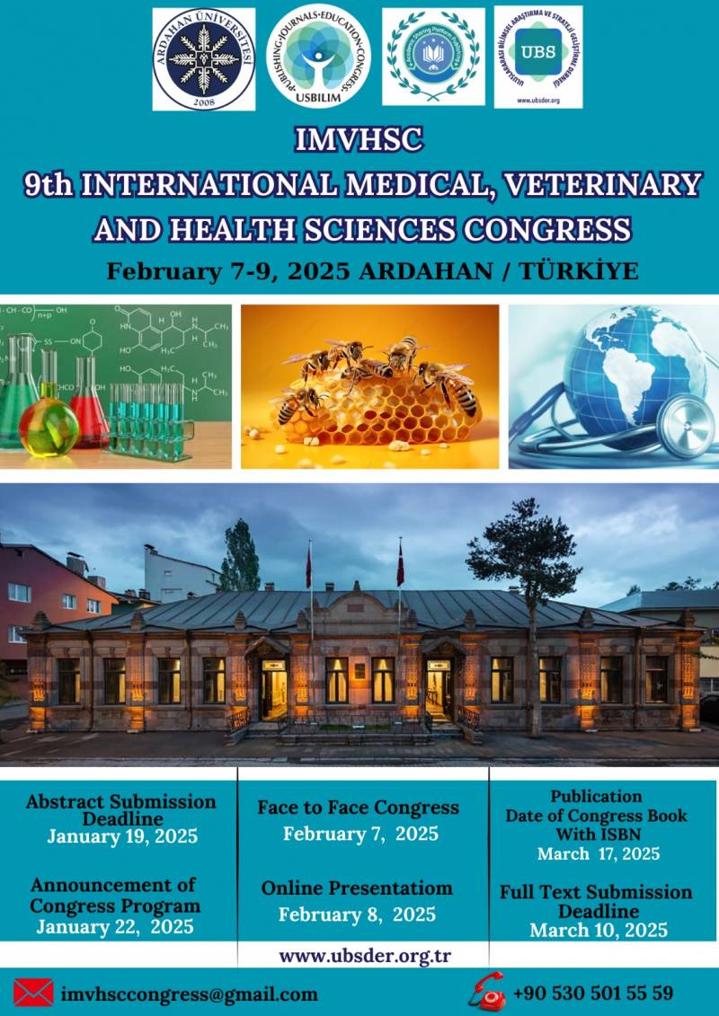 Ardahan Üniversitesinin 07-09 Şubat 2025 tarihleri arasında düzenlediği MVHSC Uluslarası 9. Tıp, Sağlık ve Veteriner Bilimleri Kongre afişi Ek'te yer almaktadır.